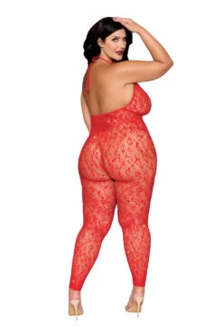 Indulge in the seamless hug of the Lavender Haze Bodystocking gown. The crochet knit dress features an elastic strapless neckline, cutout bodice with gold metal flower accents , and a playful tassel hem detail.